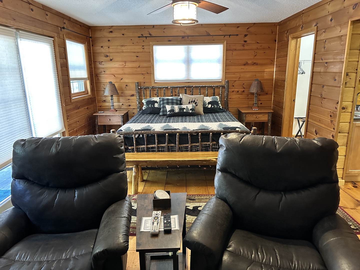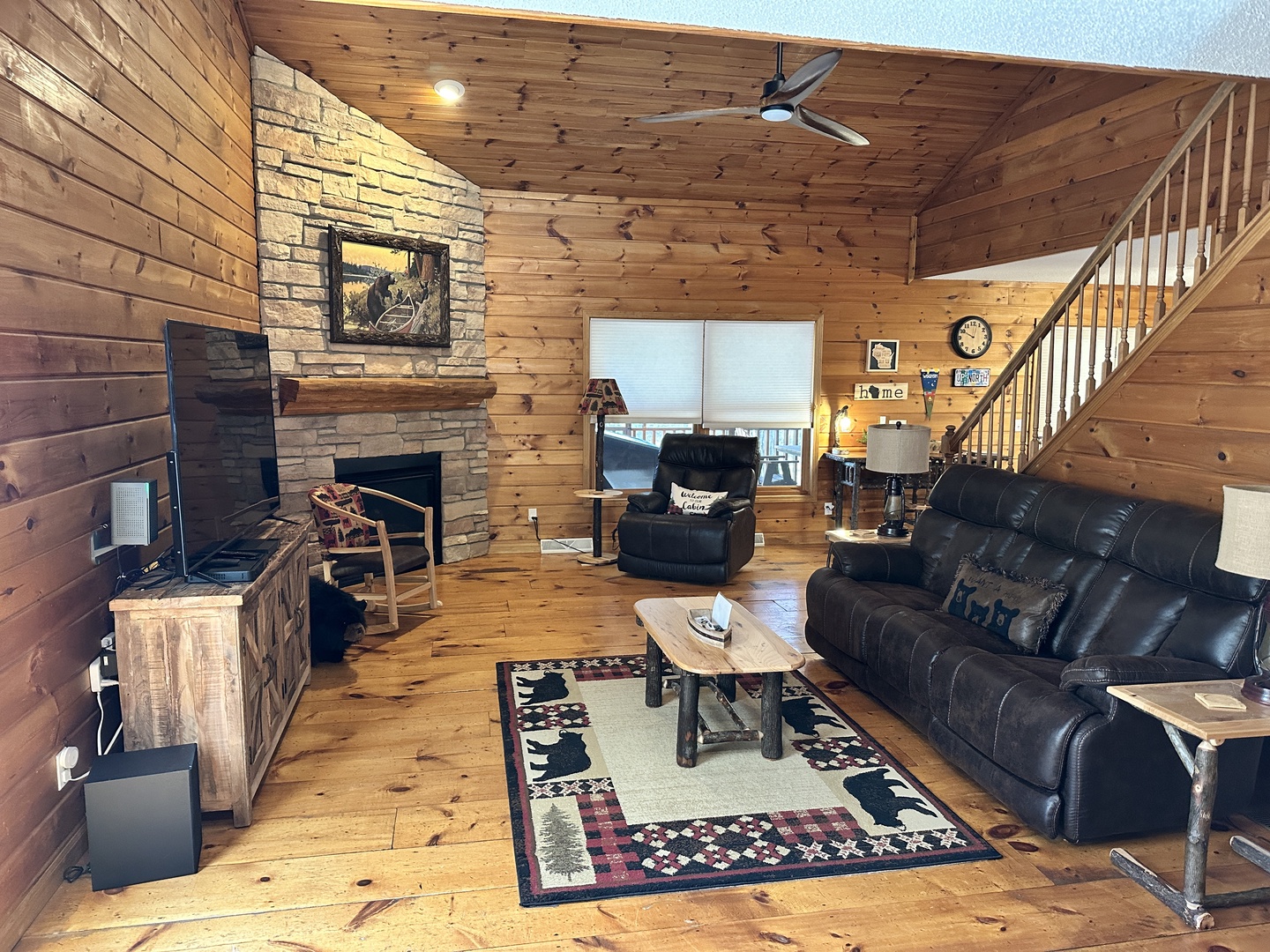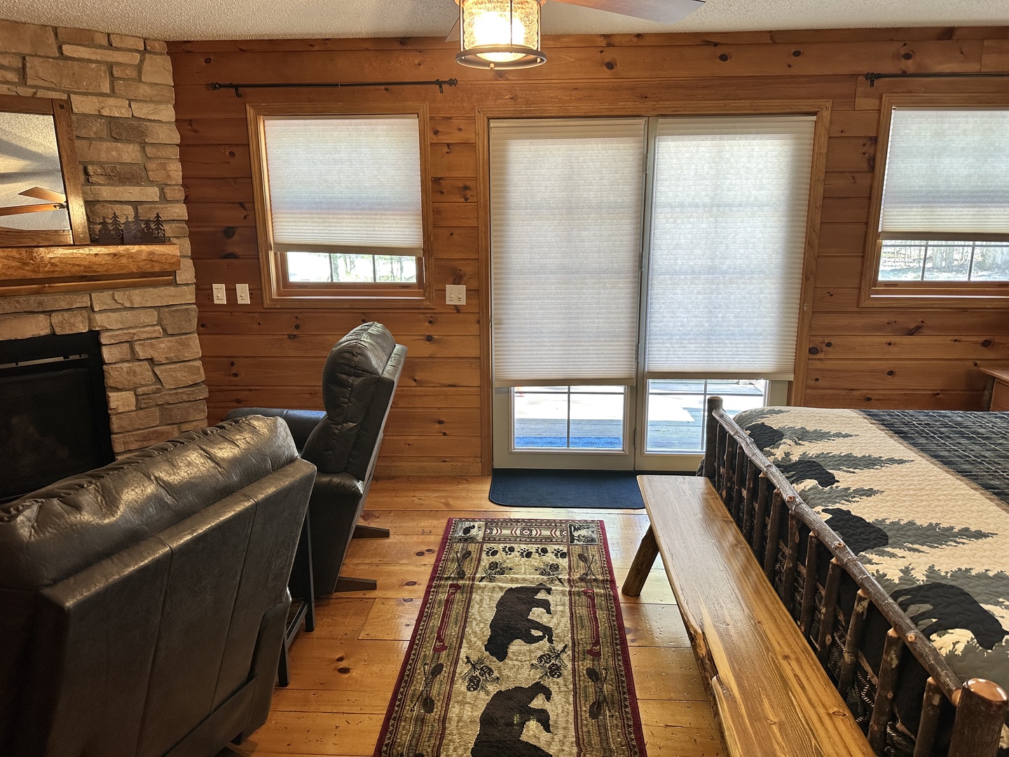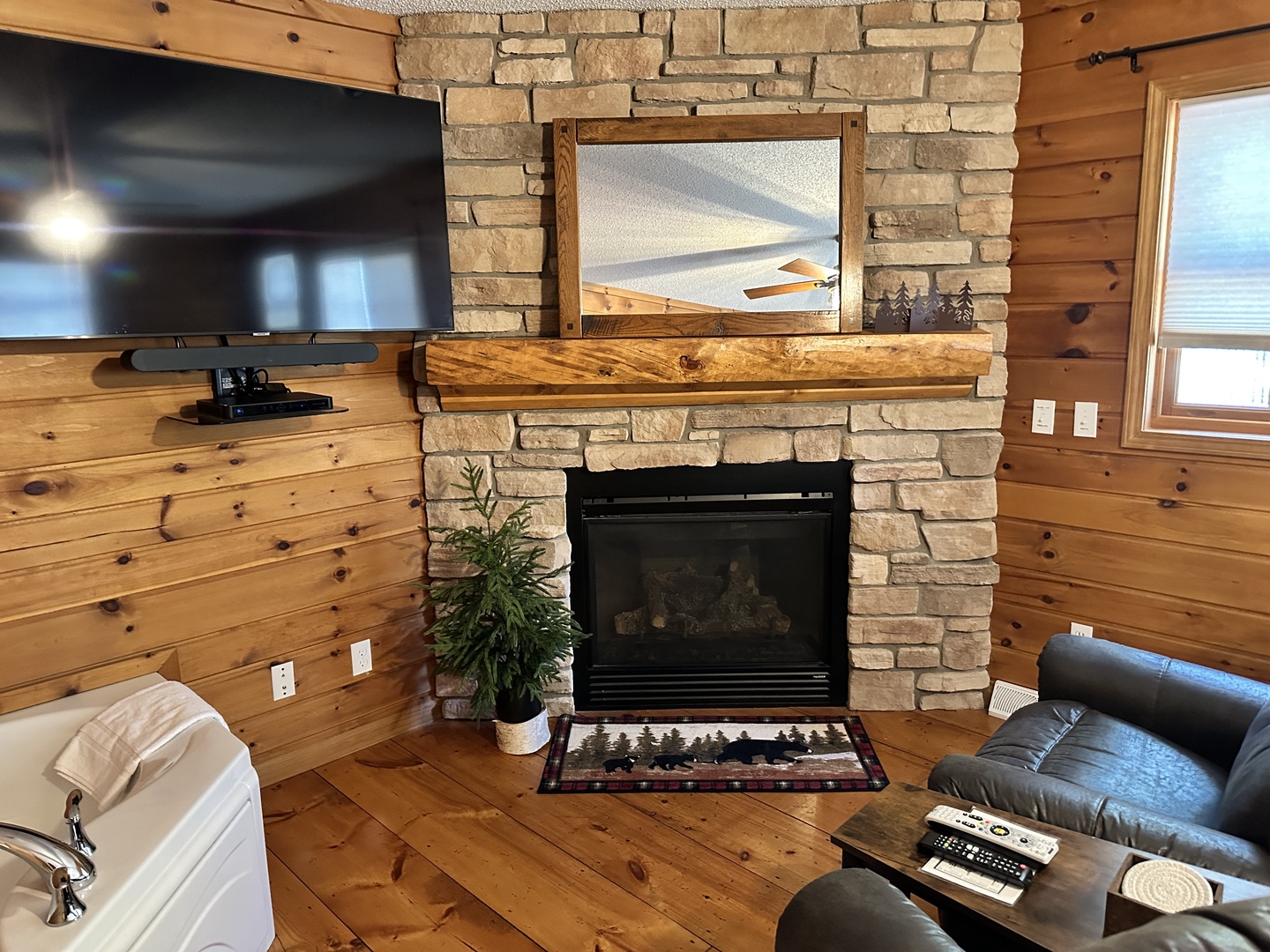 Year round 2051 square foot 3 bedroom 3.5 bath cabin. This cabin includes a fully equipped kitchen, dining room, living room with gas fireplace and a 65" TV. Screened in porch with table for six. A private master suite with whirlpool tub and gas fireplace, tub with shower, and private deck. Maximum Occupancy is 10. There is a 2 night minimum when booking online. Thus rates are based on a 2 night stay.
