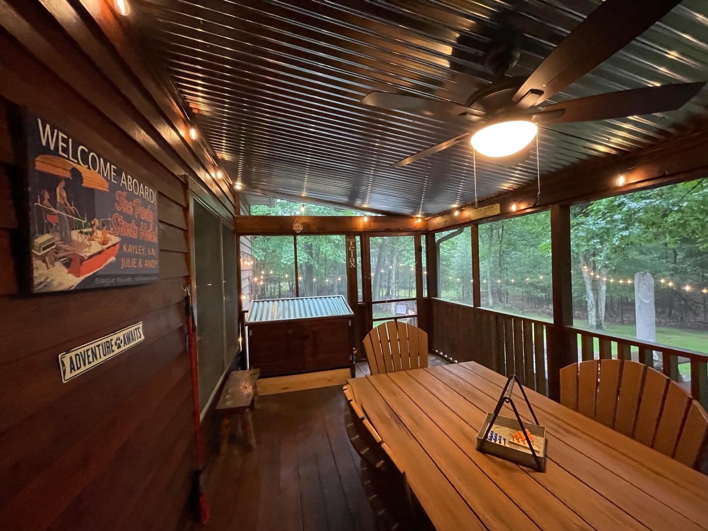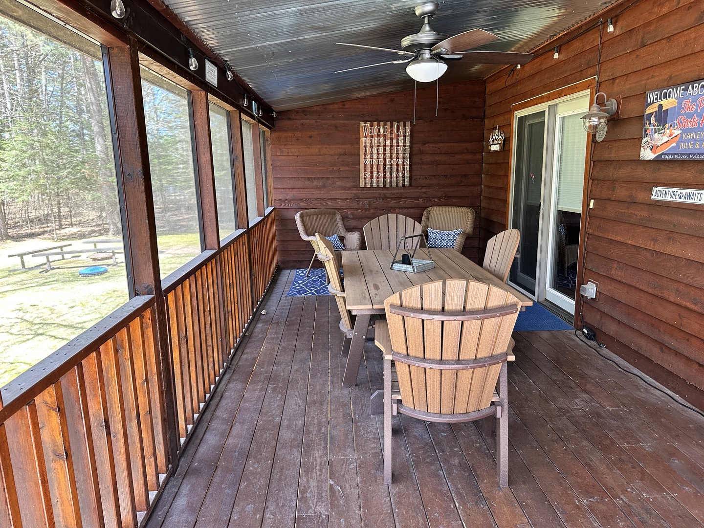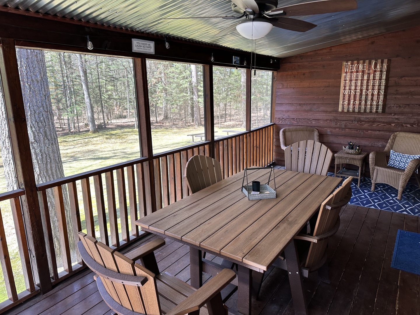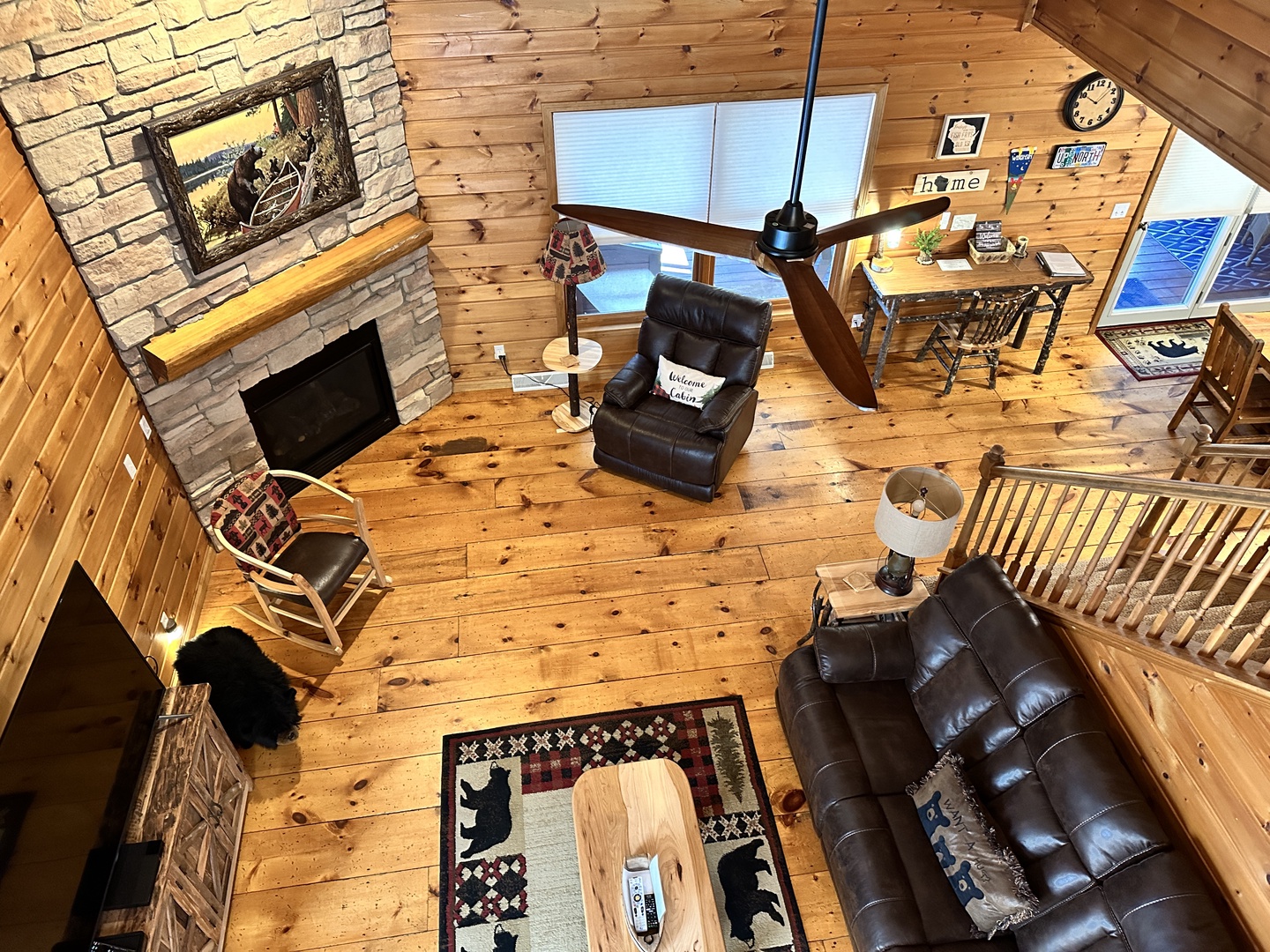 Year round 2051 square foot 3 bedroom 3.5 bath cabin. This cabin includes a fully equipped kitchen, dining room, living room with gas fireplace and a 65" TV. Screened in porch with table for six. A private master suite with whirlpool tub and gas fireplace, tub with shower, and private deck. Maximum Occupancy is 10. There is a 2 night minimum when booking online. Thus rates are based on a 2 night stay.