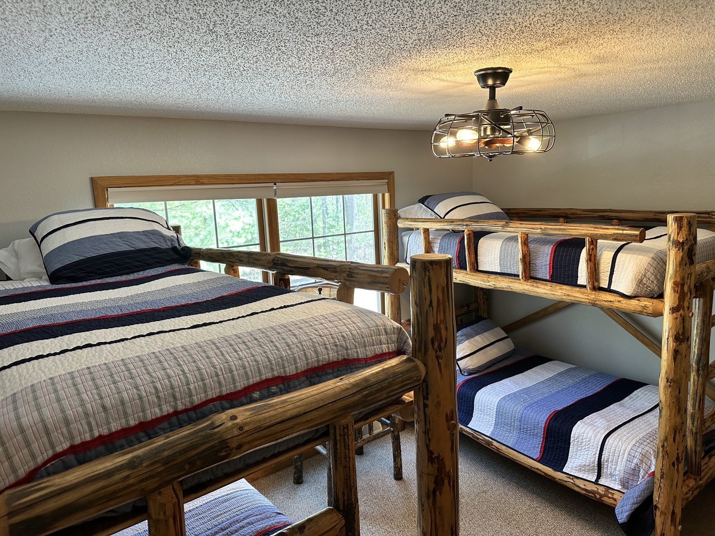 - **Master Suite:** Private, with a king bed, whirlpool tub, gas fireplace, and a private deck