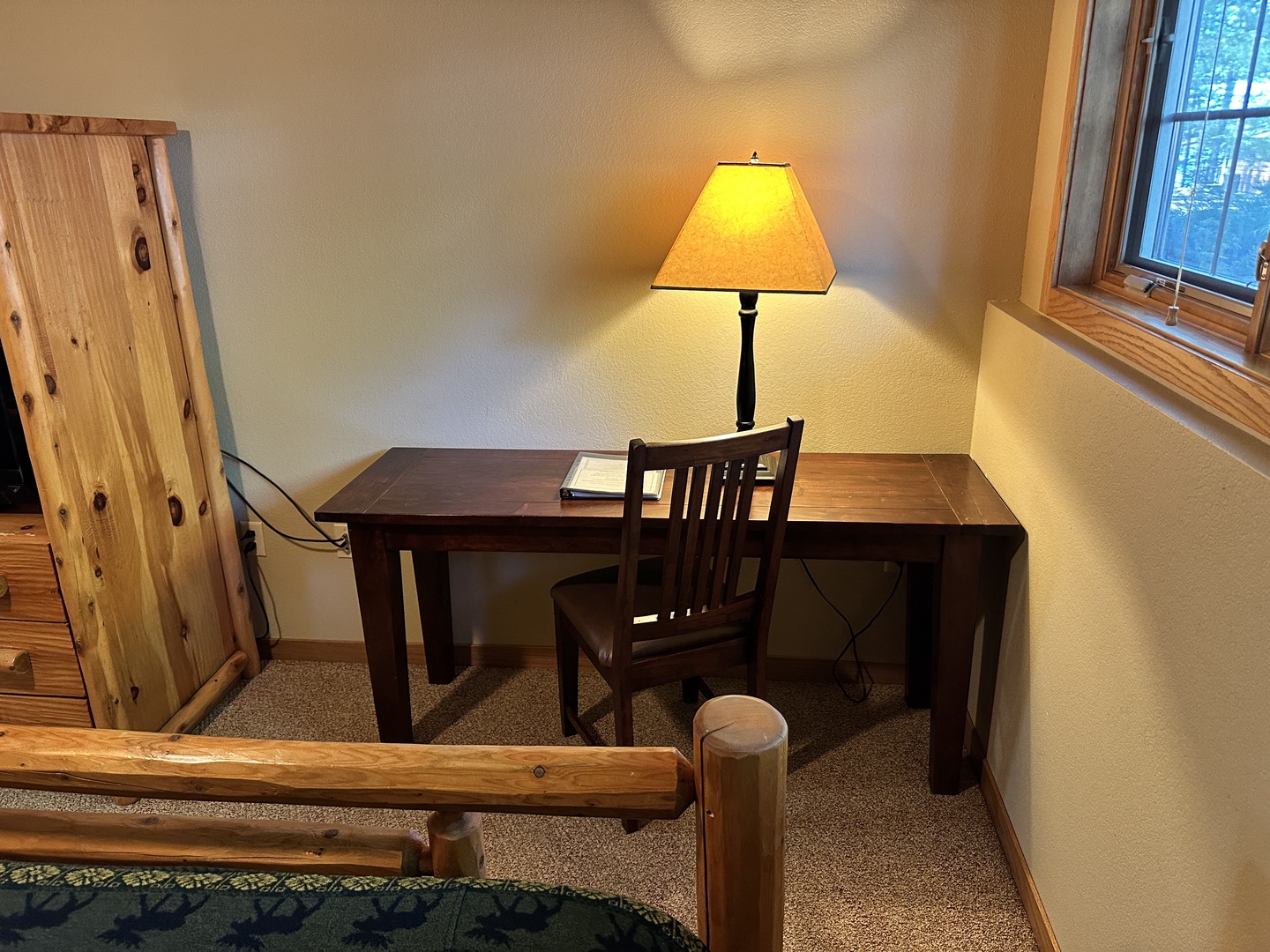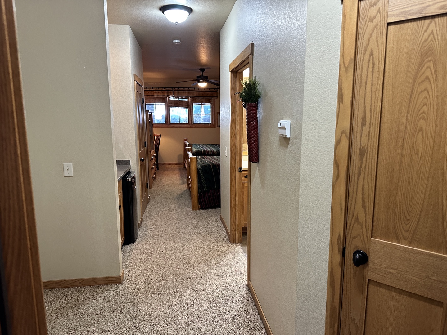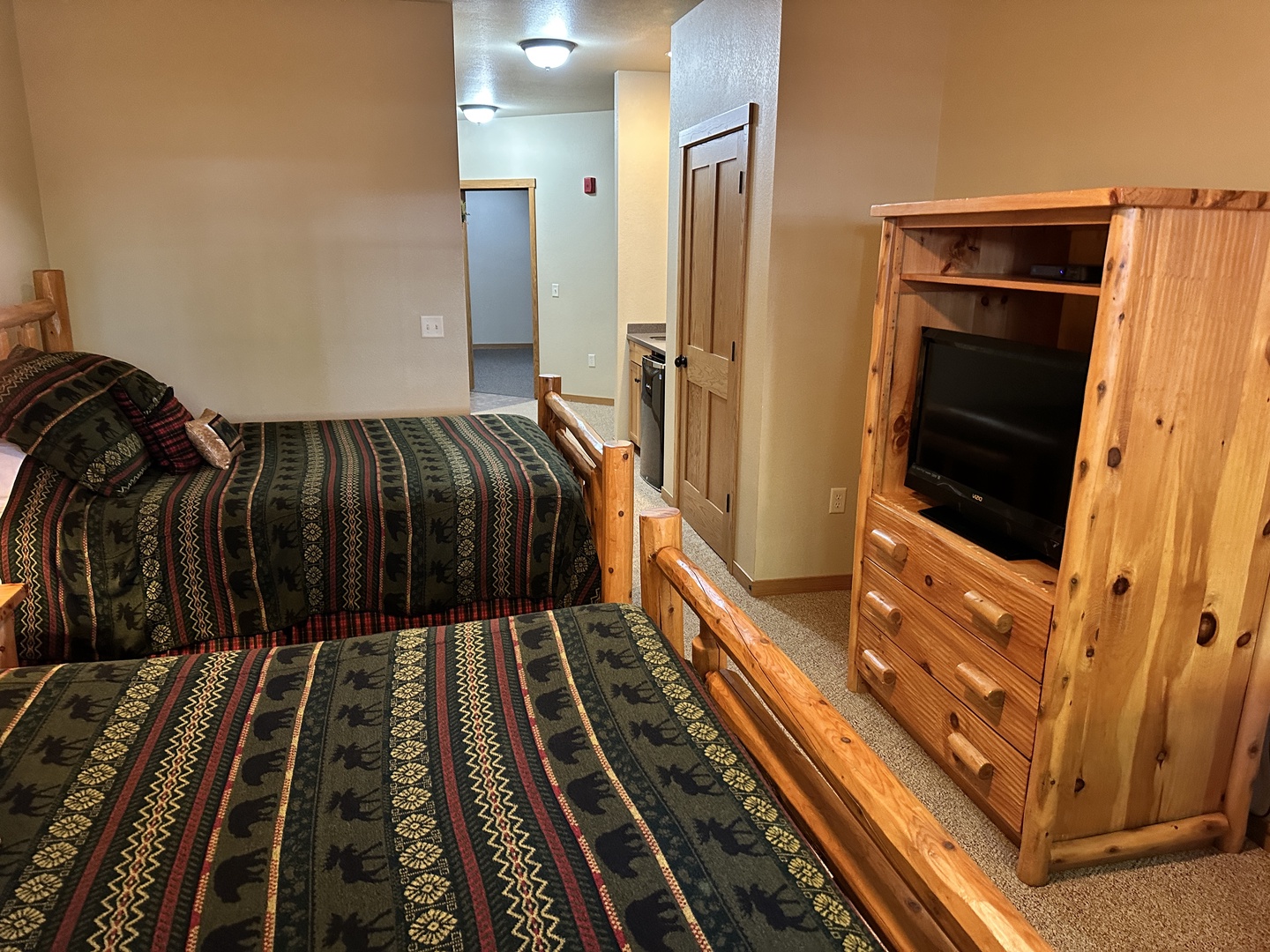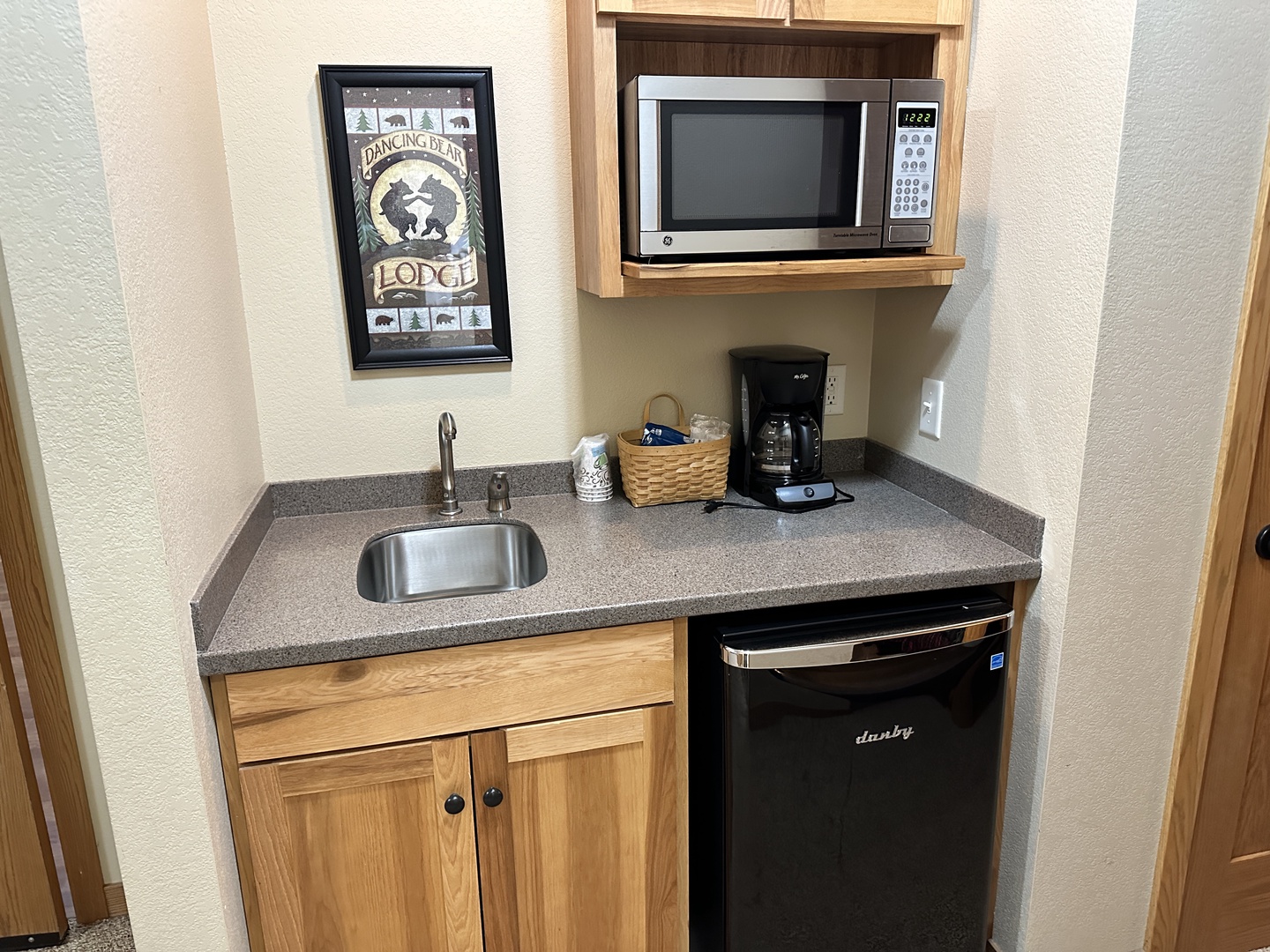 Year round hotel-style 442 square foot room unit with private bath that has a tub with shower. Some have a view of the lake.