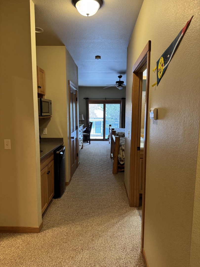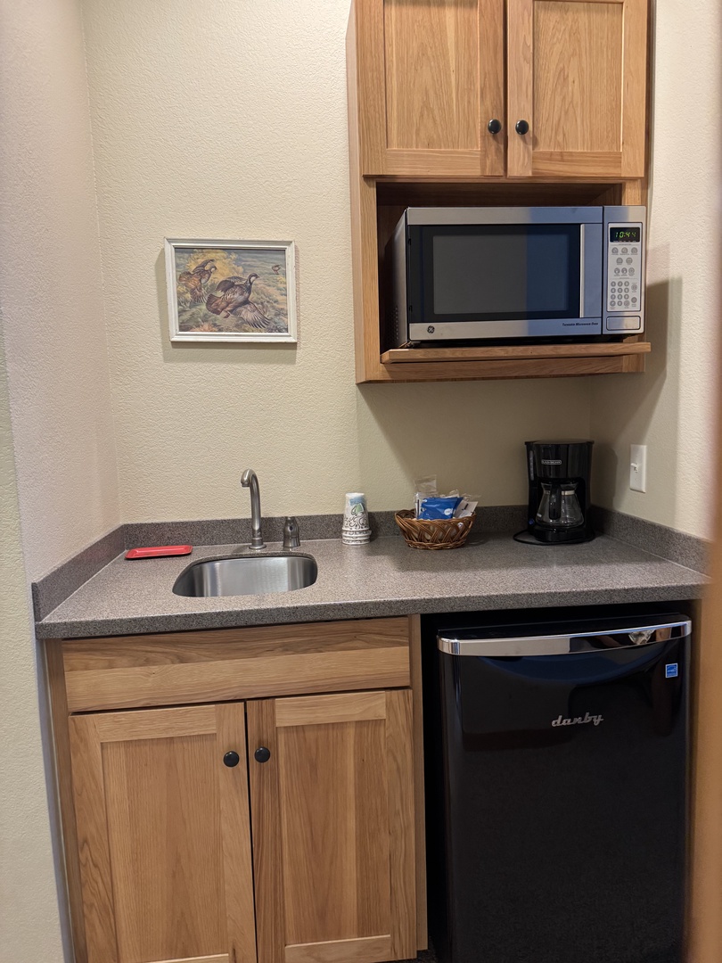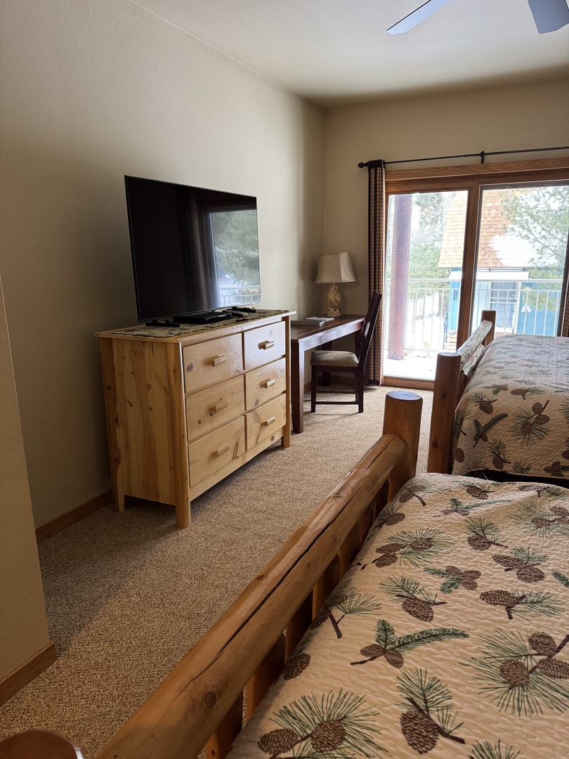 Year round hotel-style 442 square foot room unit with private bath that has a tub with shower, and a balcony. 1 King and 1 Queen The family friendly arrangement of our Studio guestrooms makes your family vacation a breeze. Store snacks in the mini-fridge and microwave some popcorn before movie time on the satellite TV. A spacious bathroom helps everyone get ready and out the door on-time for whatever adventure has been planned for the day.