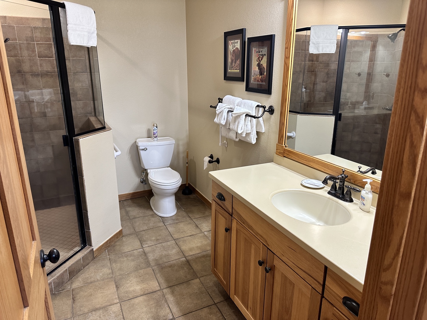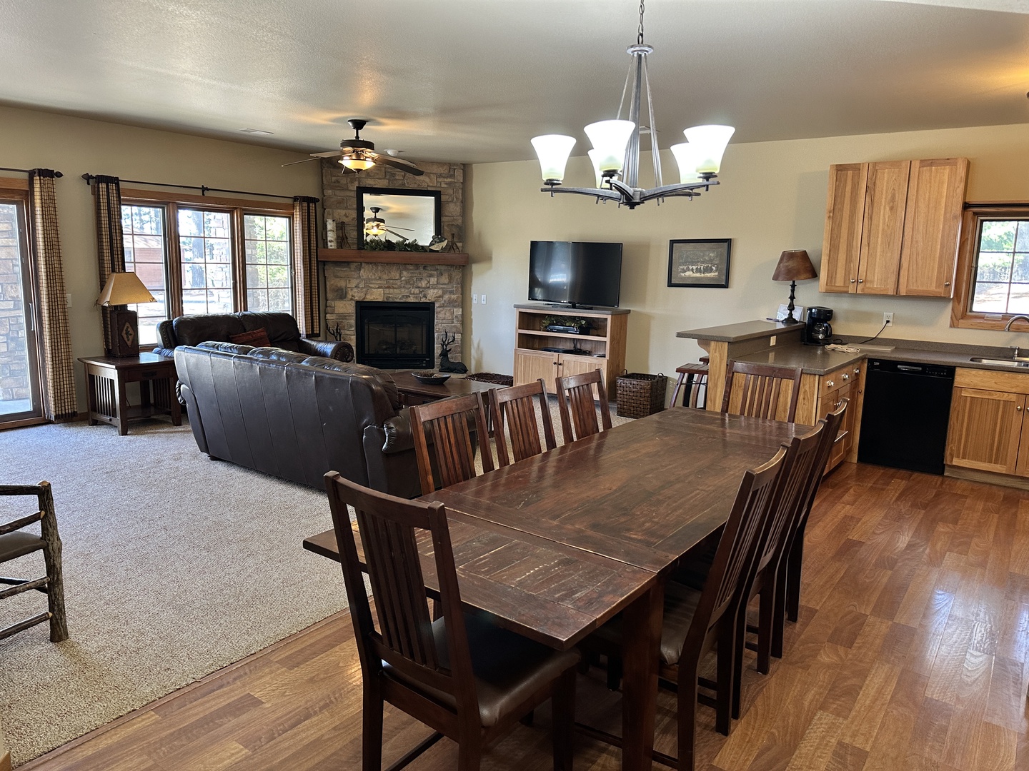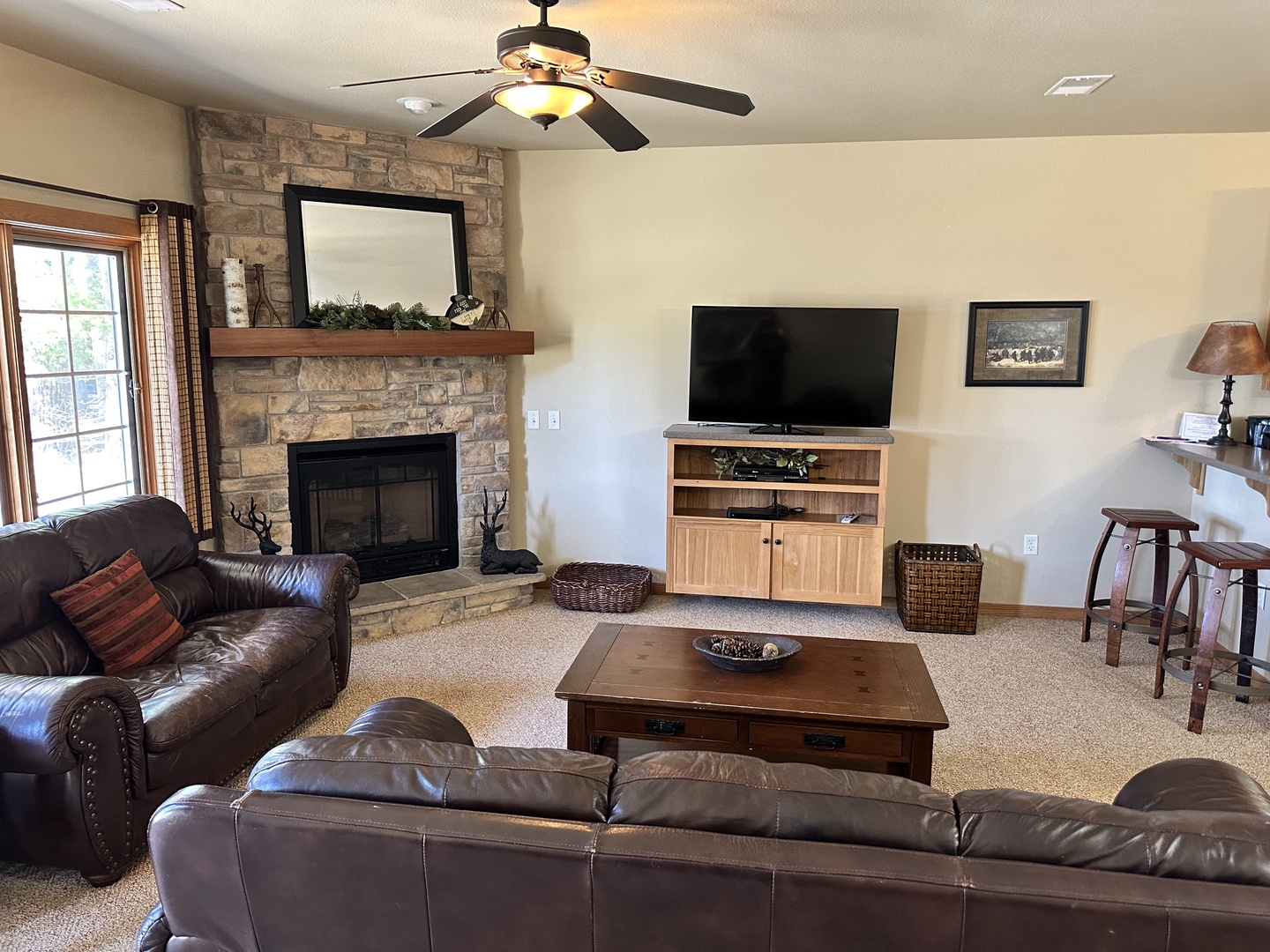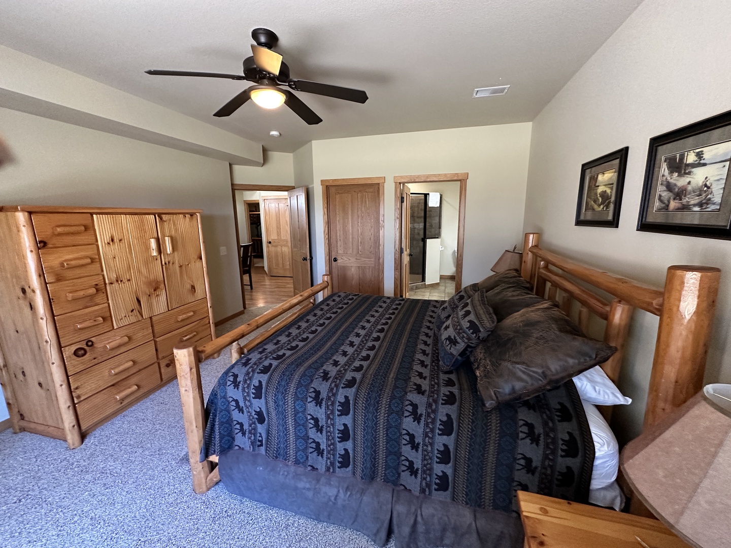 The rustic elegance of our Lodge Units provides all the comforts of home to our discerning guests. The spacious spa bathroom complete with rain shower will wash your worries away. Select your favorite entertainment on the flat screen TV and settle in for the night or relax with family and friends in front of the gas fireplace.
