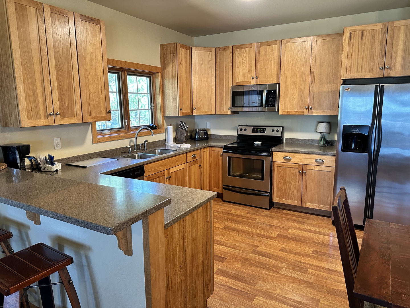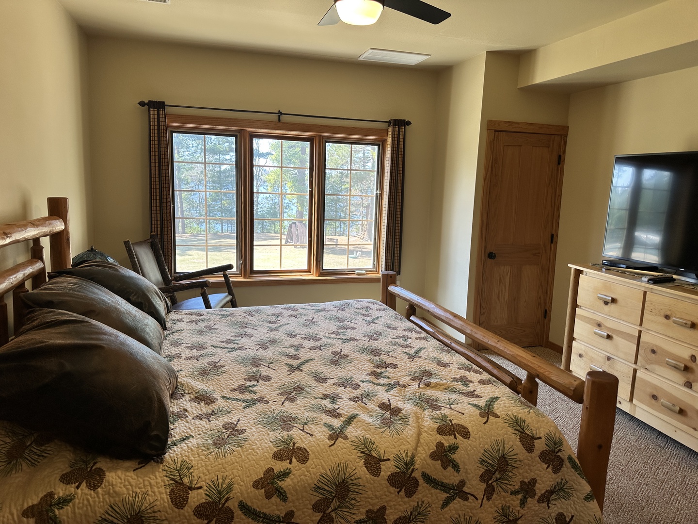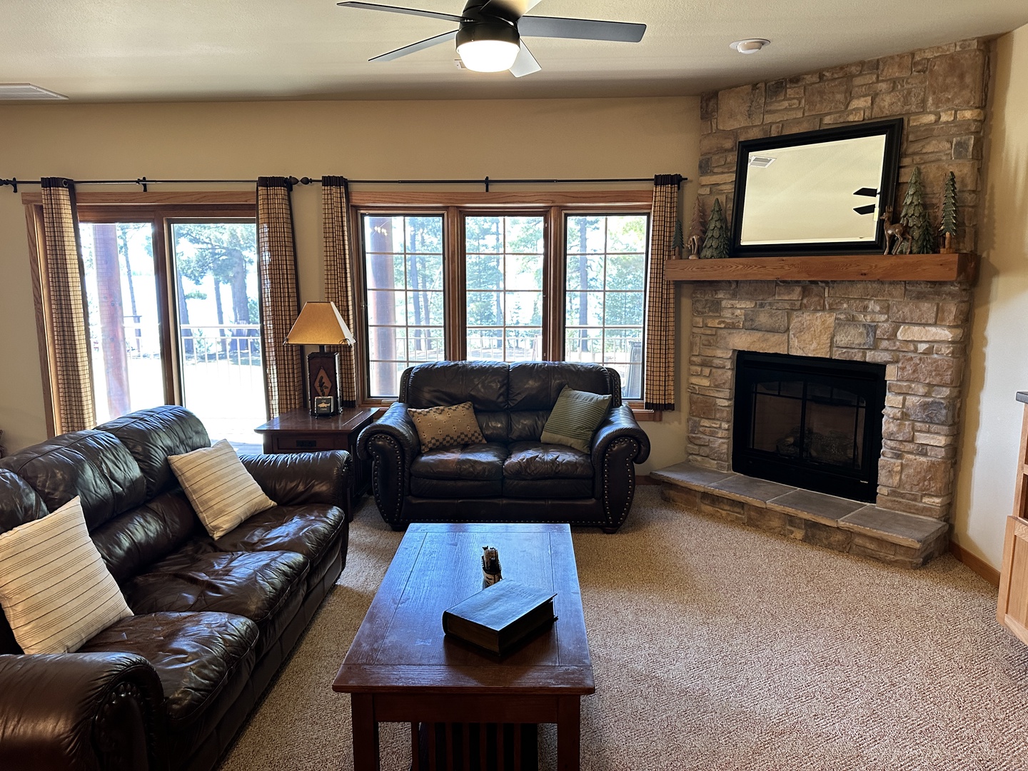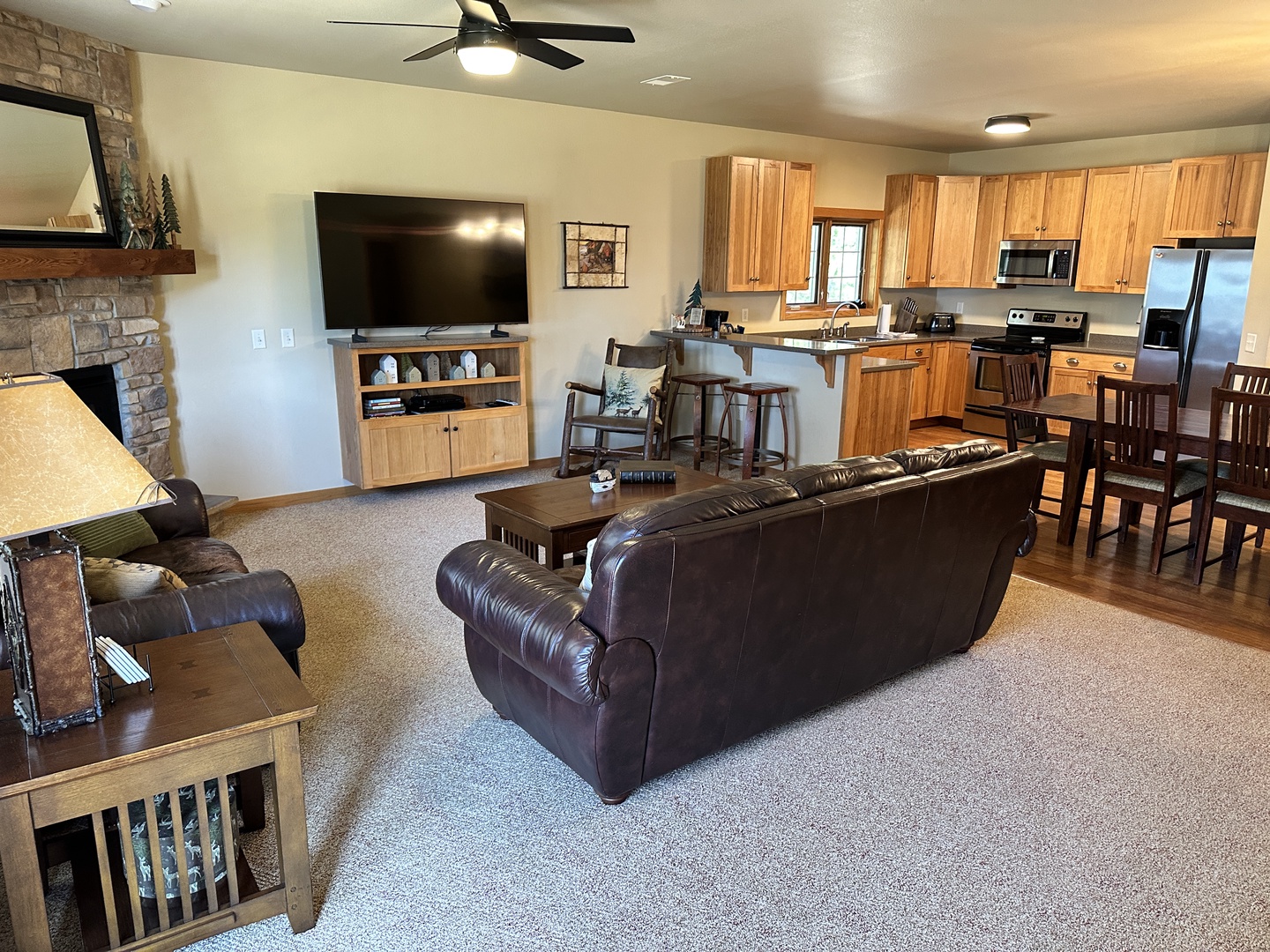 ear round lake-view 1550 square foot 2 Bedroom 2 bath corner unit condominium. Each with a fully equipped kitchen, living room with gas fireplace, balcony or patio, and private master bathroom with walk-in shower. Other bathrooms have a tub with shower. Maximum Occupancy is 6. 1 King in master bedroom, 1 Queen and 1 Double in the second bedroom