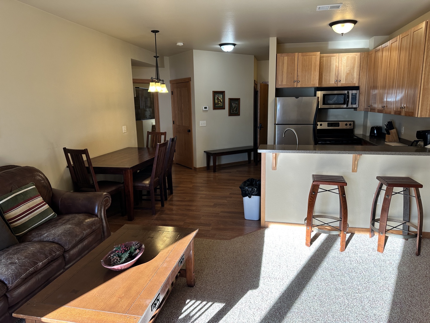 Year round lake-view 1000 square foot 1 bedroom 1 bath condominium. Each with fully equipped kitchen, living room with gas fireplace, balcony or patio that faces the lake, bathroom with a walk-in shower,1 king bed 1 queen bed