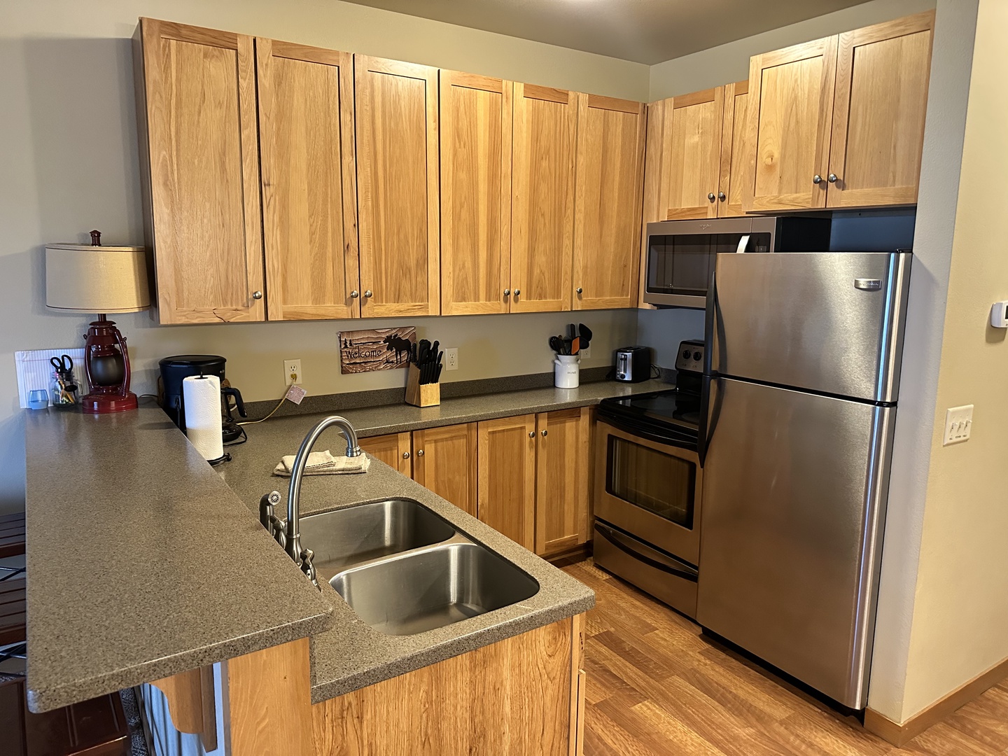 Year round lake-view 1350 square foot 1 bedroom with a loft 1 bath condominium. Each with fully equipped kitchen, living room with gas fireplace, balcony that faces the lake, bathroom with a walk-in shower,