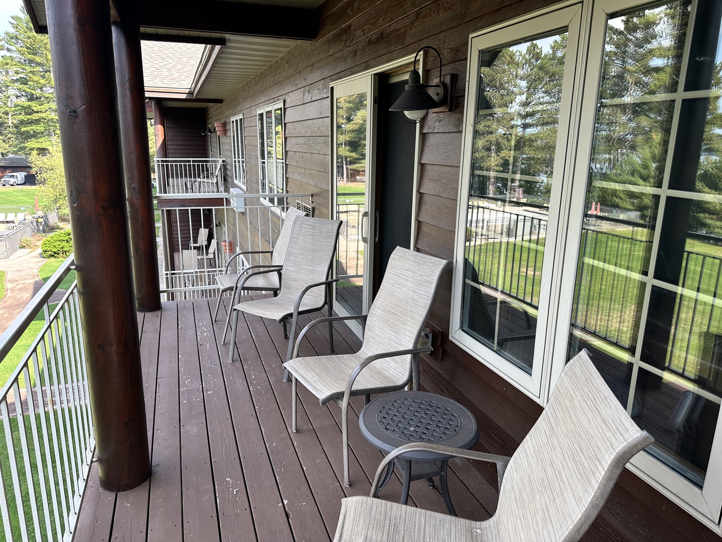 year round lake-view 1550 square foot 2 Bedroom 2 bath corner unit condominium. Each with a fully equipped kitchen, living room with gas fireplace, balcony or patio, and private master bathroom with walk-in shower. Other bathrooms have a tub with shower. Maximum Occupancy is 6. T1 King in master bedroom, 1 Bunk bed that is Queen on the bottom and Double on the top in second bedroom