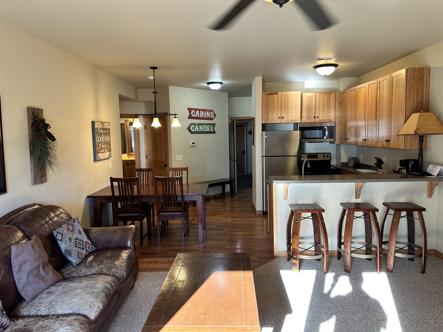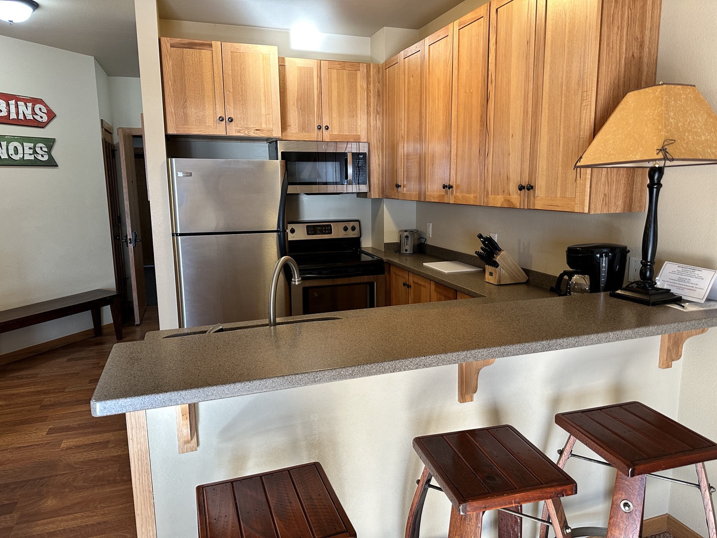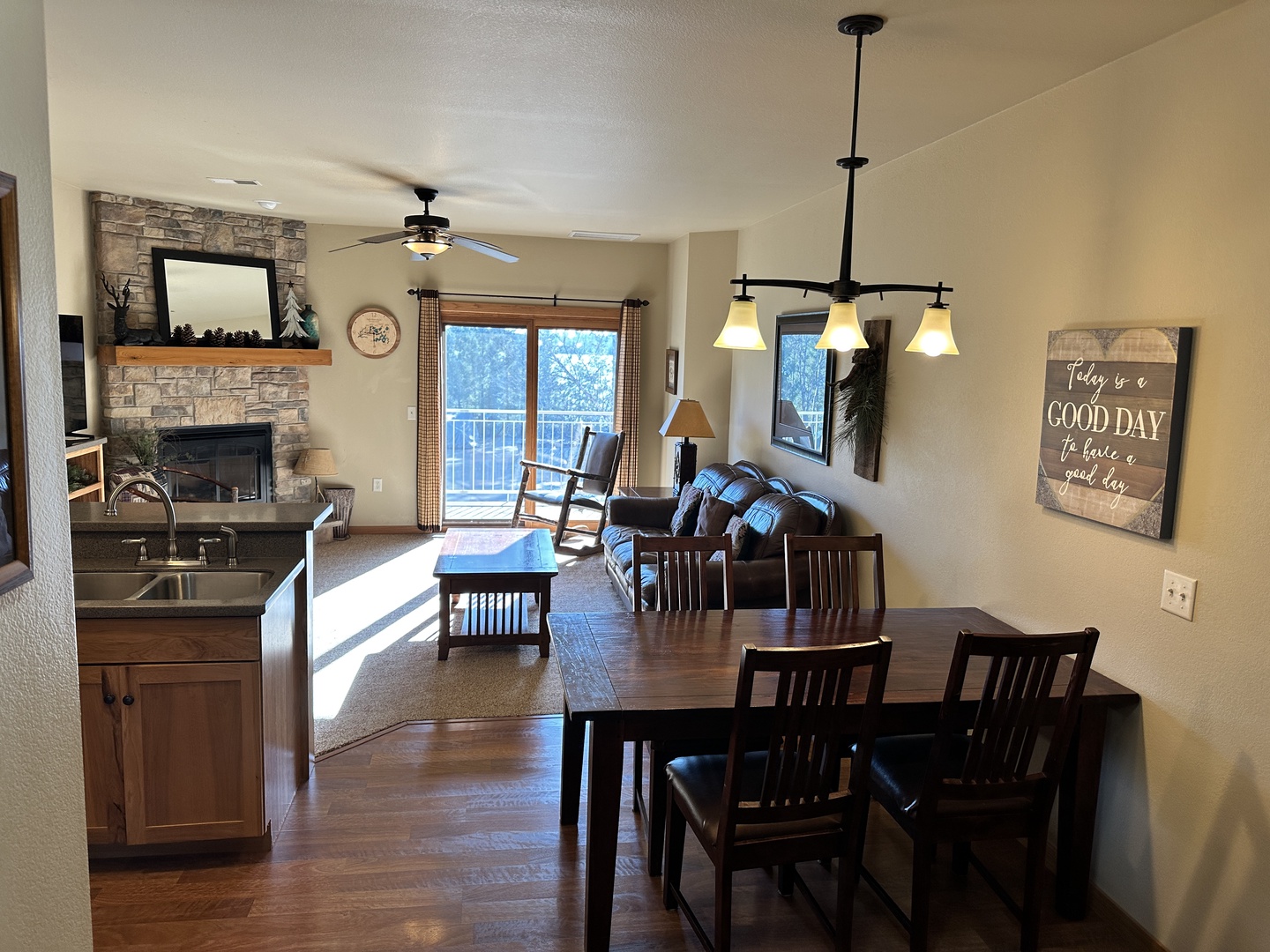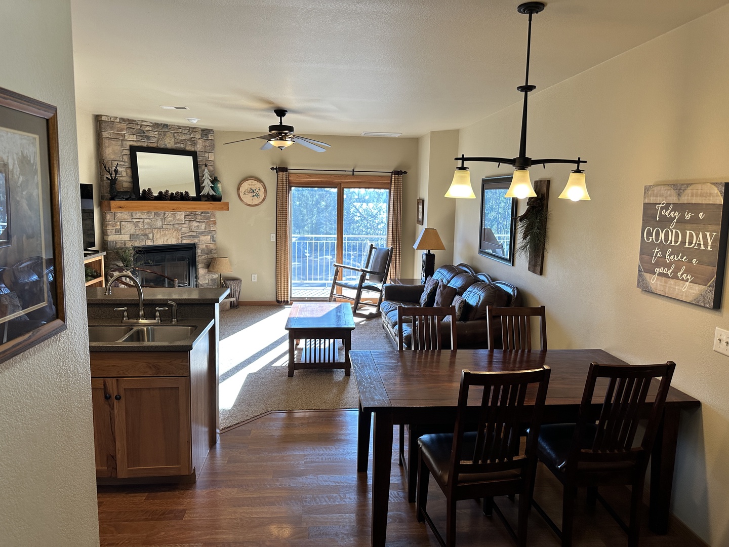 Year round lake-view 1500 square foot 2 bedroom 2 bath condominium. Each with fully equipped kitchen, living room with gas fireplace, balcony or patio that faces the lake, bathroom with a walk-in shower, and second bathroom has a tub with shower.
