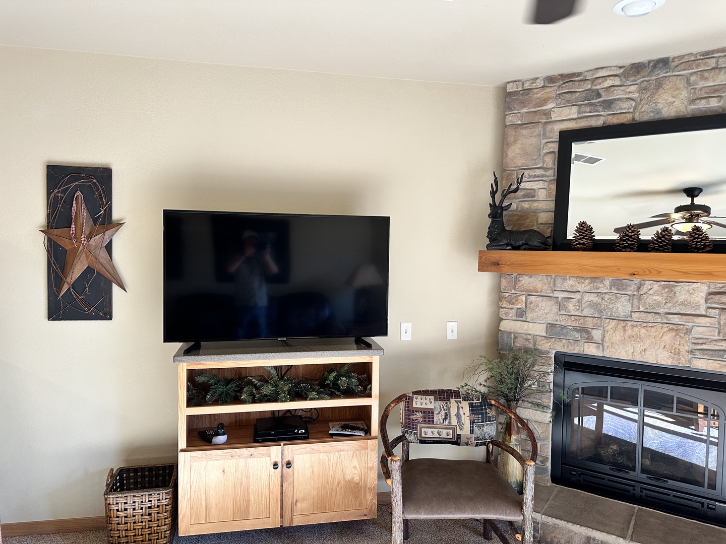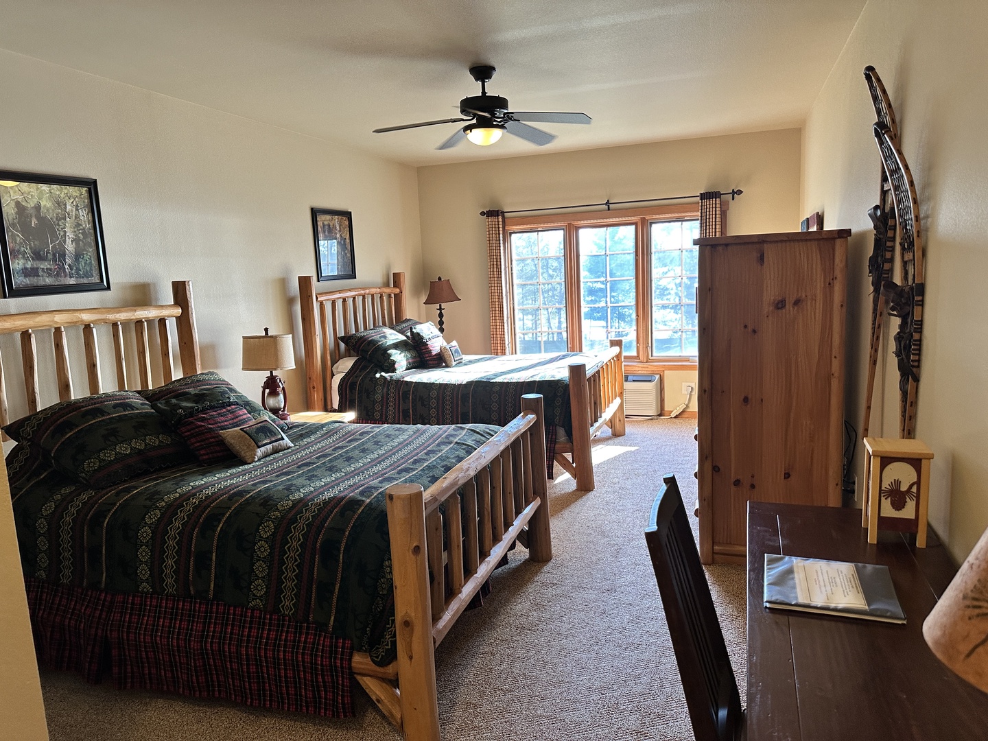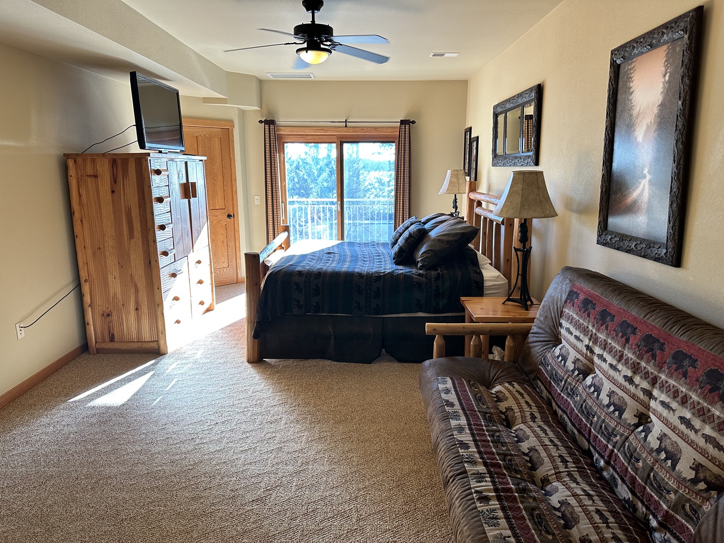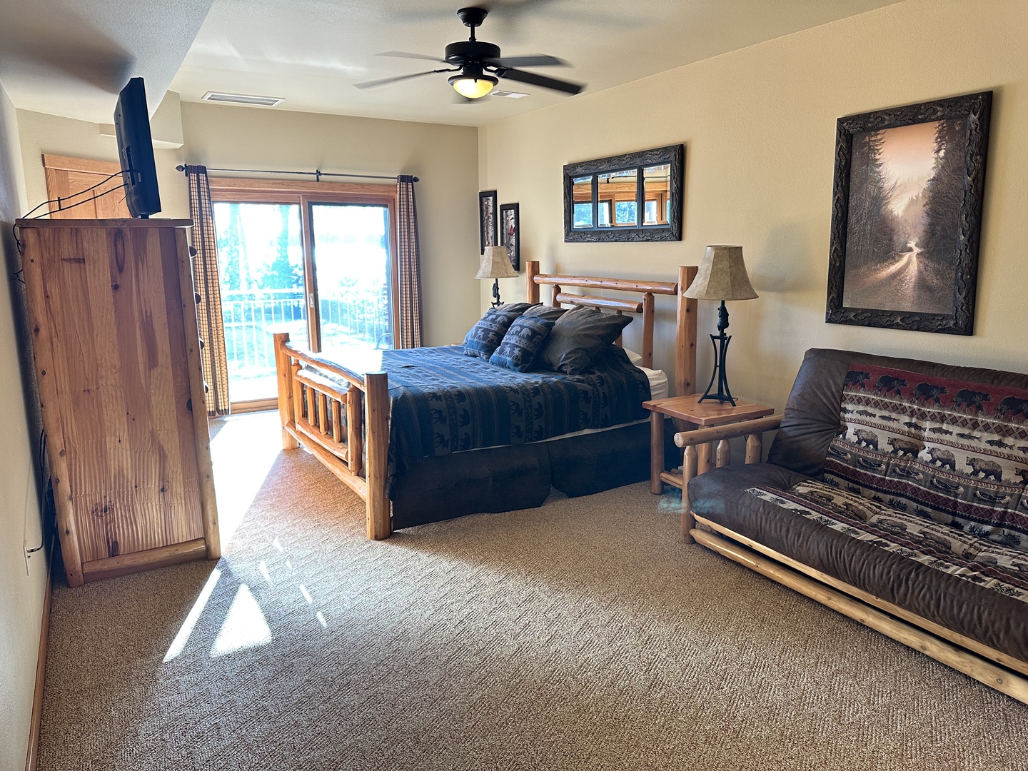 The rustic elegance of our Lodge Units provides all the comforts of home to our discerning guests. The spacious spa bathroom complete with rain shower will wash your worries away. Select your favorite entertainment on the flat screen TV and settle in for the night or relax with family and friends in front of the gas fireplace.