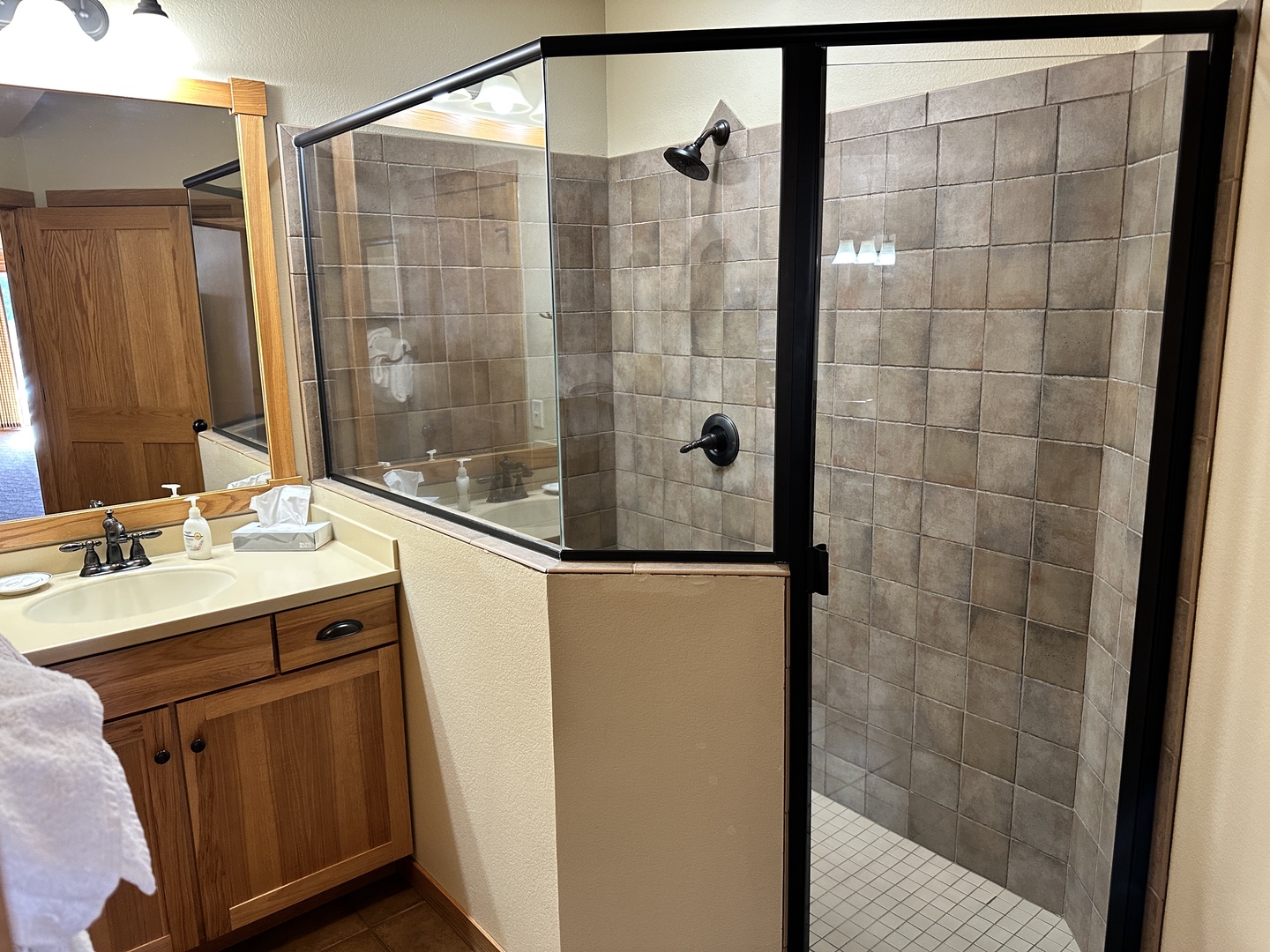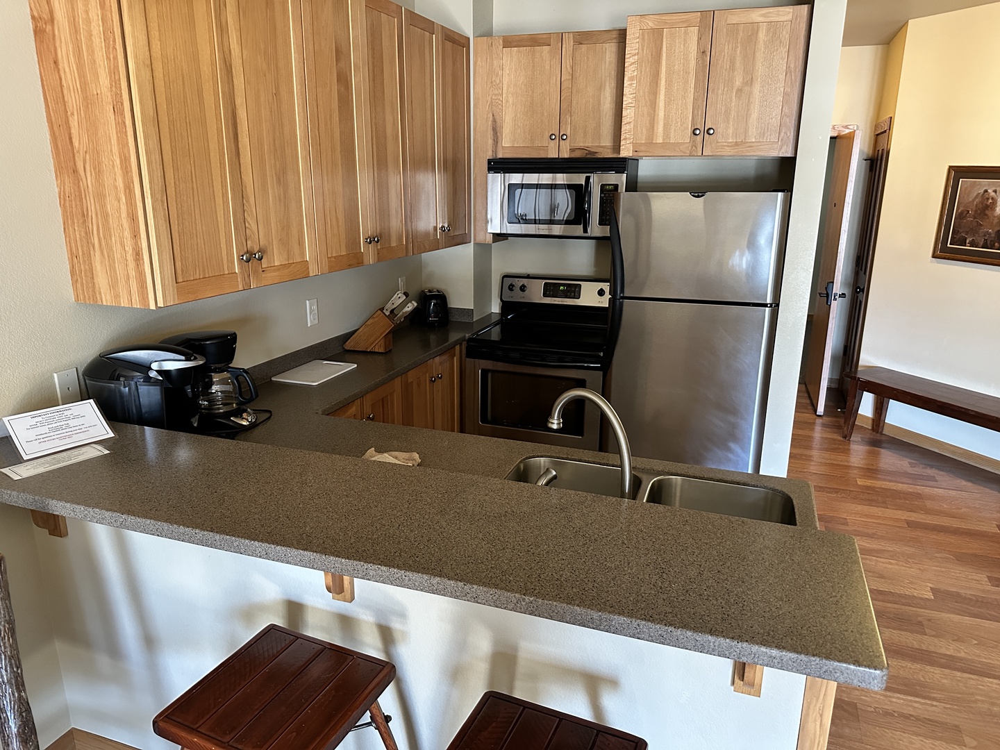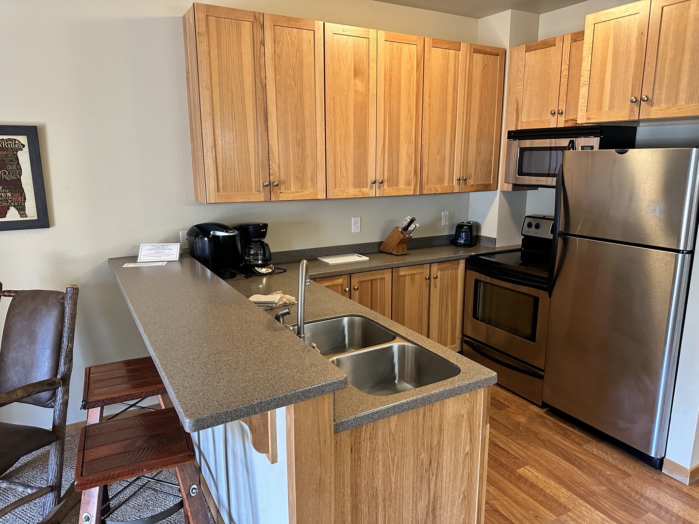 Condo 206 includes adjacent Studio Unit 216, with the same beautiful western exposure lake and pool views. The Studio provides a separate, lockable bedroom with king and queen beds, nightstand power/USB ports, room darkening curtains, coffee/microwave bar with refrigerator, and bathroom with tub/shower combo. This Unit also includes a 50" Smart TV with SonicNet fiber internet service.