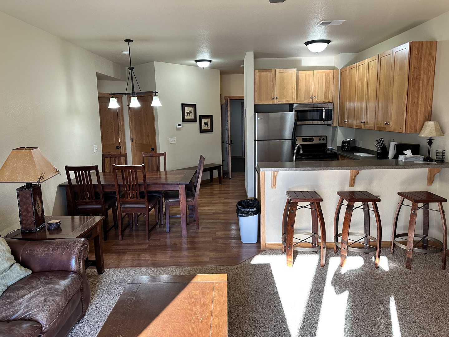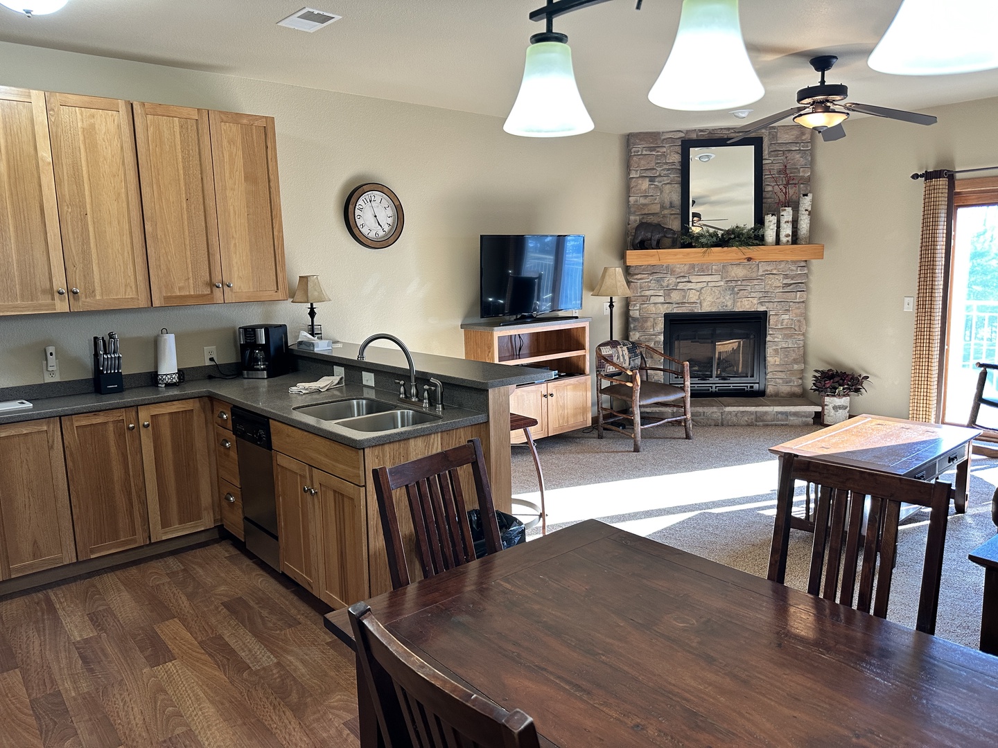 Year round lake-view 1500 square foot 2 bedroom 2 bath condominium. Each with fully equipped kitchen, living room with gas fireplace, balcony or patio that faces the lake, bathroom with a walk-in shower, and second bathroom has a tub with shower.