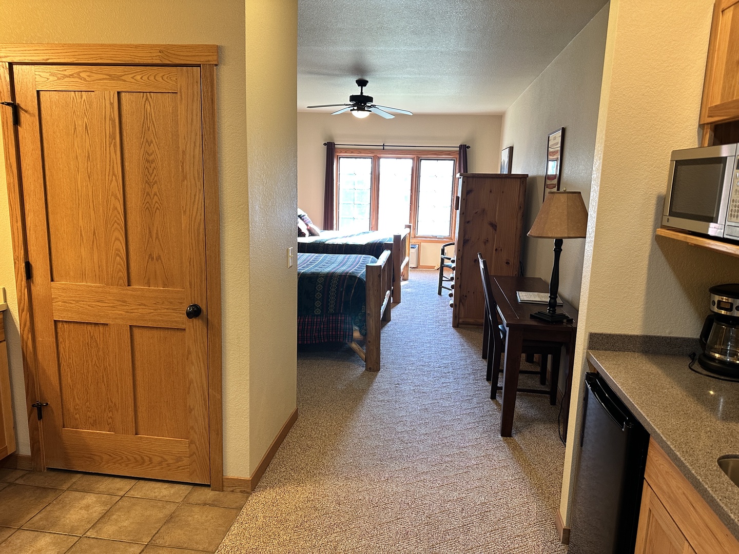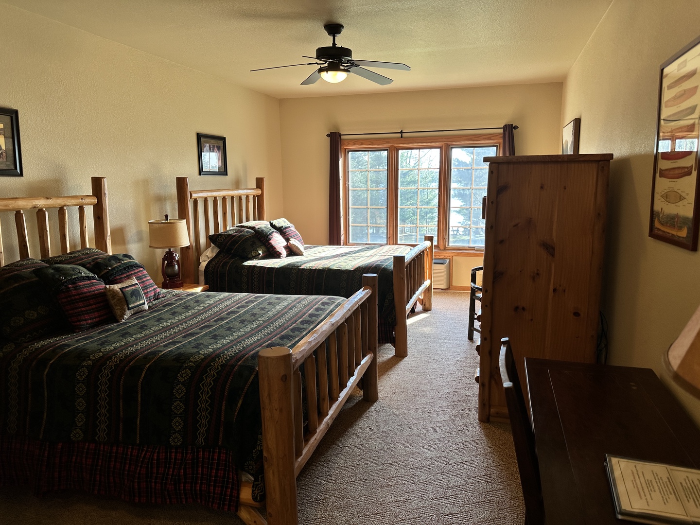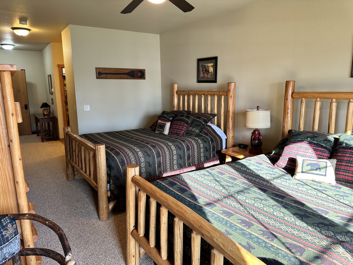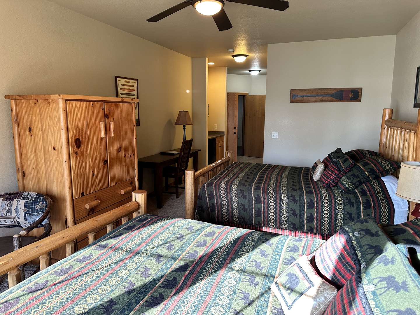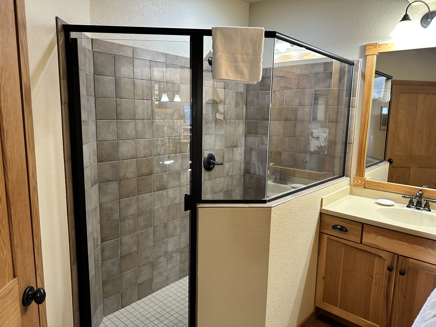 The rustic elegance of our Lodge Units provides all the comforts of home to our discerning guests. The spacious spa bathroom complete with rain shower will wash your worries away. Select your favorite entertainment on the flat screen TV and settle in for the night or relax with family and friends in front of the gas fireplace.