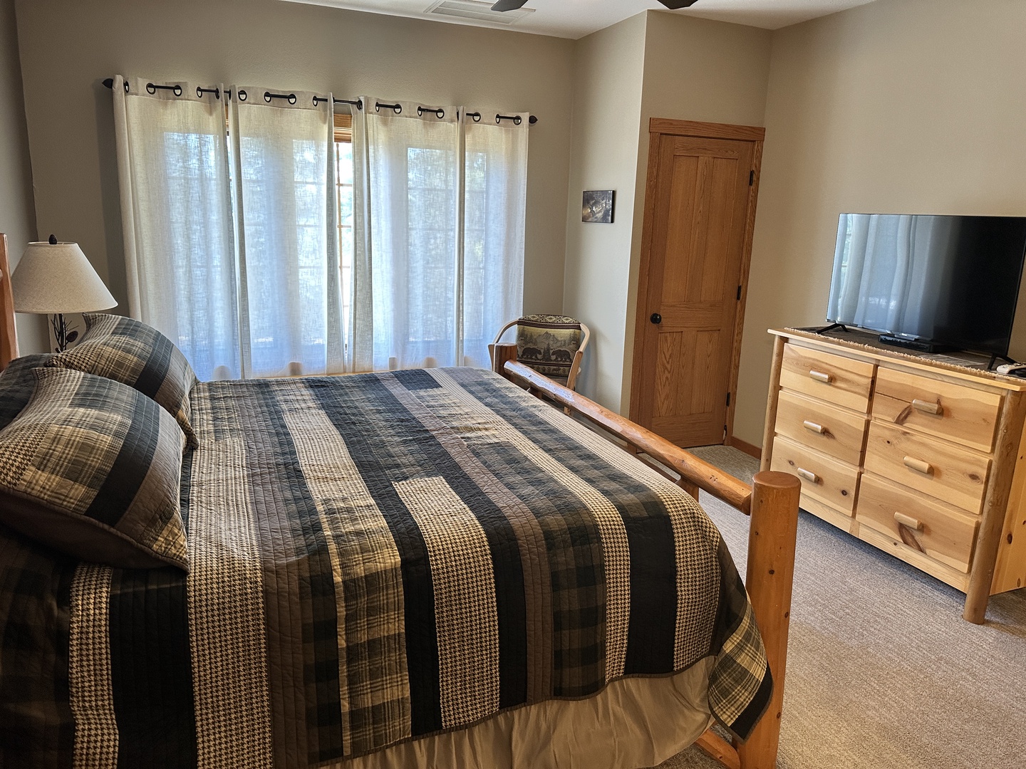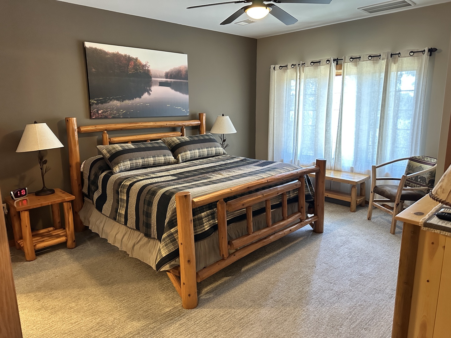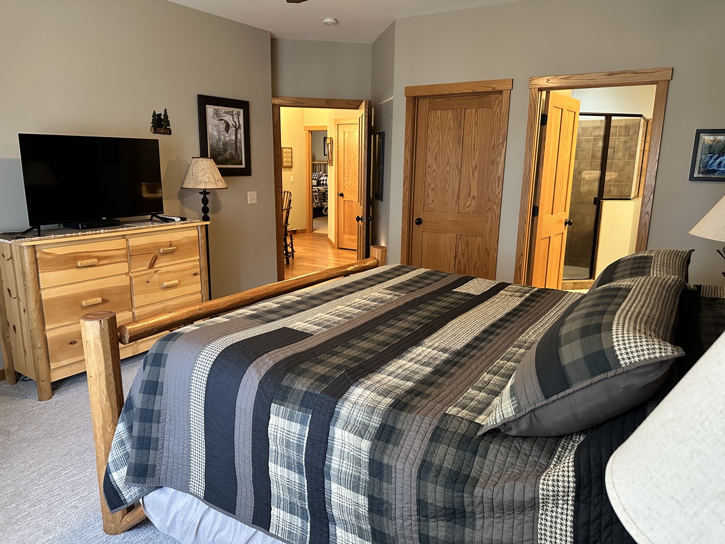 The rustic elegance of our Lodge Units provides all the comforts of home to our discerning guests. The spacious spa bathroom complete with rain shower will wash your worries away. Select your favorite entertainment on the flat screen TV and settle in for the night or relax with family and friends in front of the gas fireplace.