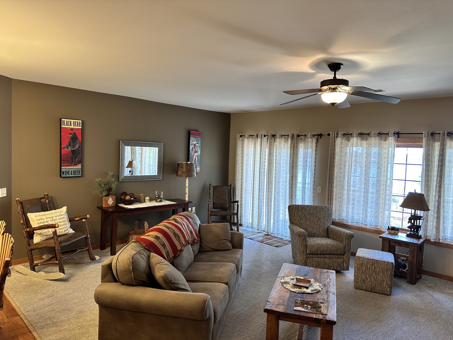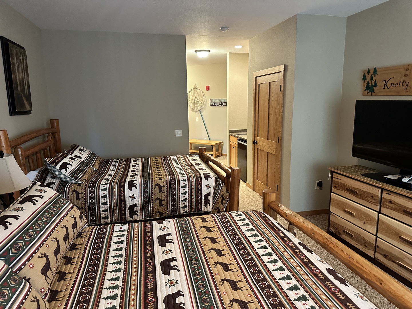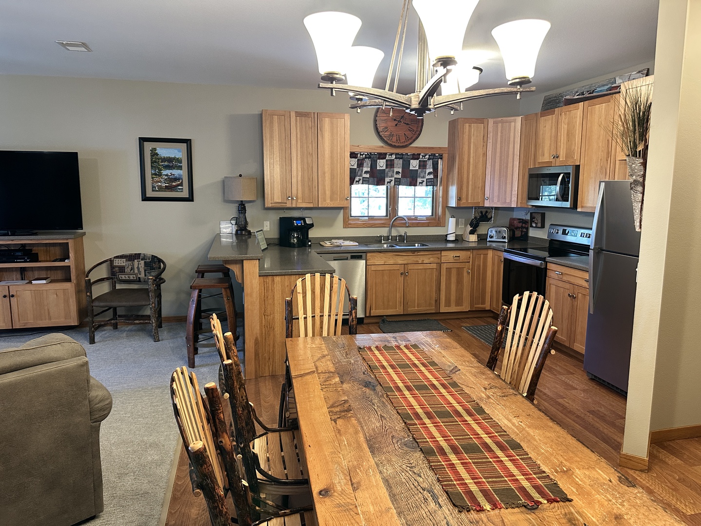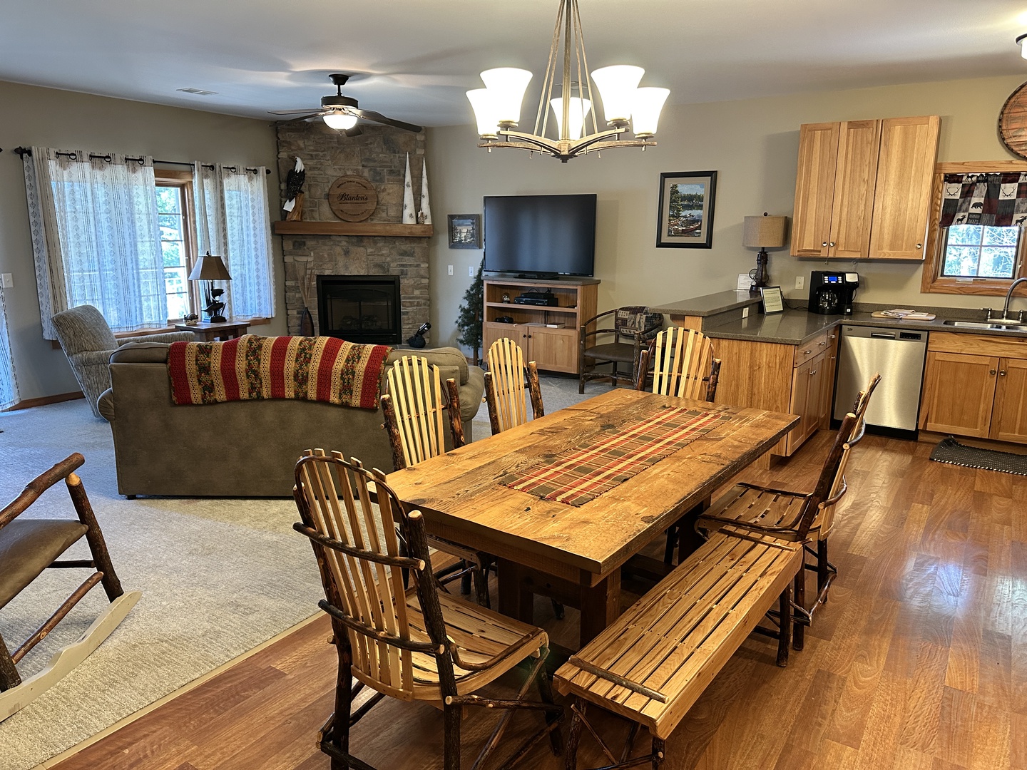 The rustic elegance of our Lodge Units provides all the comforts of home to our discerning guests. The spacious spa bathroom complete with rain shower will wash your worries away. Select your favorite entertainment on the flat screen TV and settle in for the night or relax with family and friends in front of the gas fireplace.