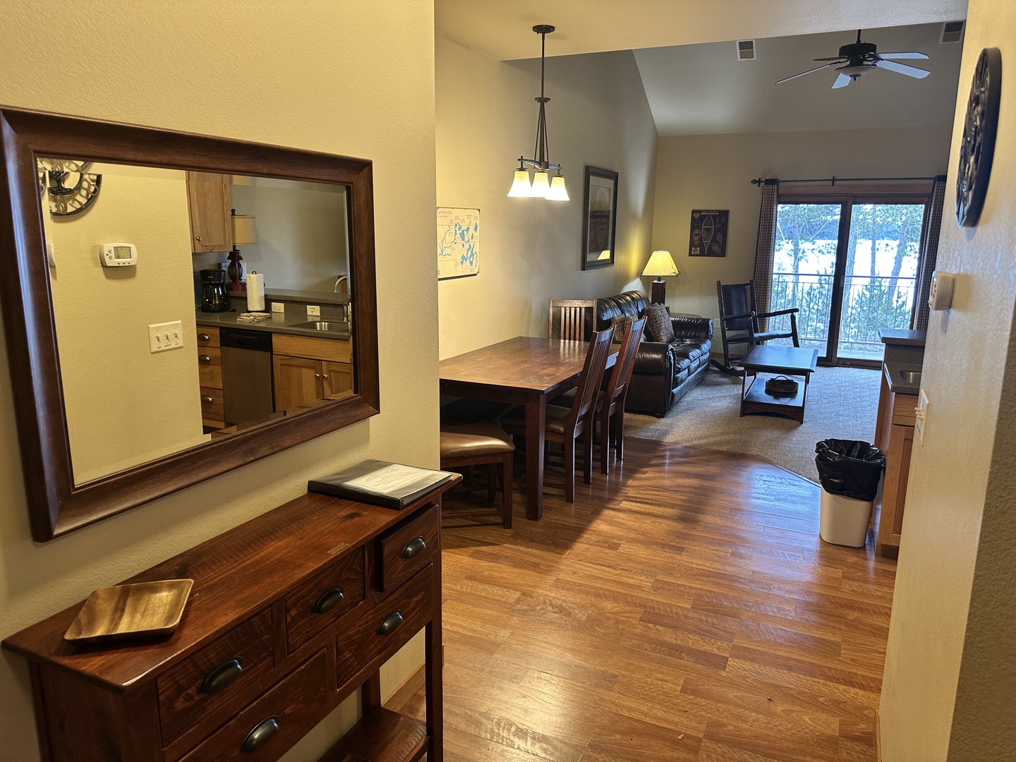 Year round lake-view 1800 square foot 2 bedroom with a loft 2 bath condominium. Each with fully equipped kitchen, living room with gas fireplace, balcony that faces the lake, and bathroom with a walk-in shower.