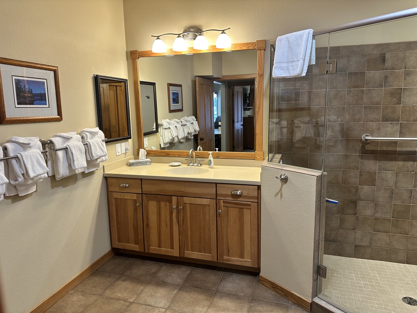 The rustic elegance of our Lodge Units provides all the comforts of home to our discerning guests. The spacious spa bathroom complete with rain shower will wash your worries away. Select your favorite entertainment on the flat screen TV and settle in for the night or relax with family and friends in front of the gas fireplace.